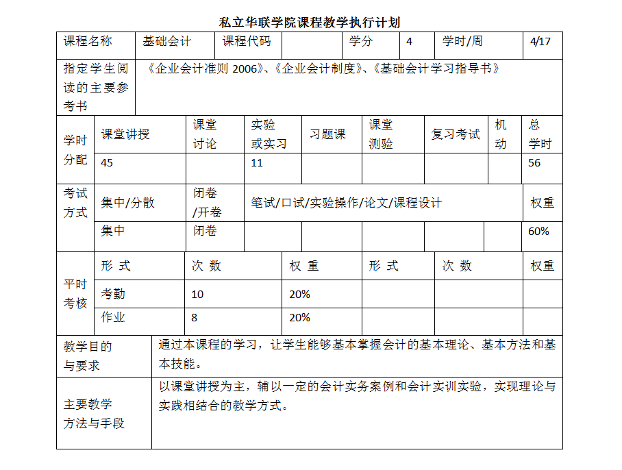 【点击下载:课程执行计划表和进度表(基础会计)】